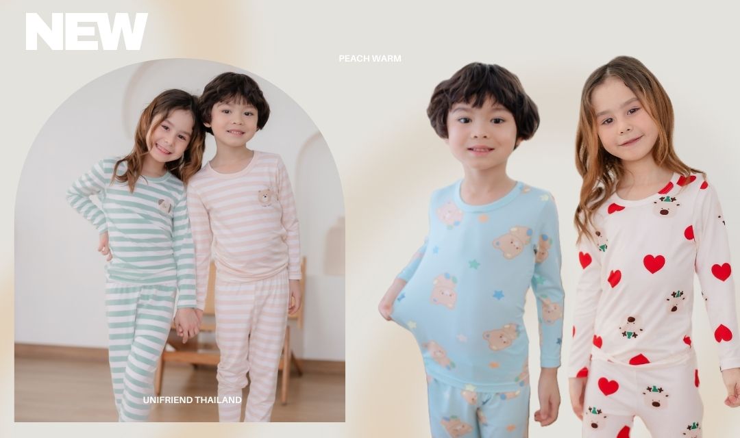 25FW/ ชุดนอนเด็ก ชุดตัวในเด็ก Peach Warm Bear฿450