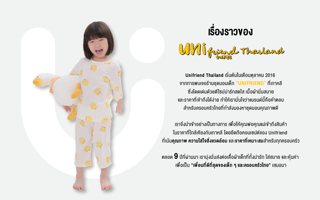 แบรนด์เสื้อผ้าเด็กที่เกิดขึ้นจากความคิดสร้างสรรค์และความนิยมชมชอบของเด็กๆ ด้วยคาแรกเตอร์ตัวการ์ตูนที่น่ารักและ การสร้างสีสันที่ไม่เหมือนใคร สร้างความสนุกเปรียบเสมือนเพื่อนที่สบายๆซึ่งเป็นเอกลักษณ์ของแบรนด์ ผ่านการเลือกสรรอย่างดีที่สุด ทั้งทางด้านเนื้อผ้า และการออกแบบ ผลิตจากผ้า cotton 100% ภายใต้นโยบายที่จะรักษาสภาพแวดล้อมให้ดีขึ้นในอนาคต