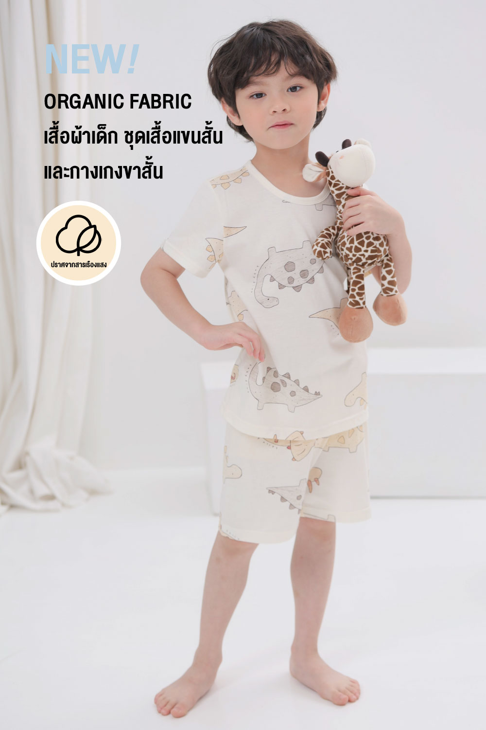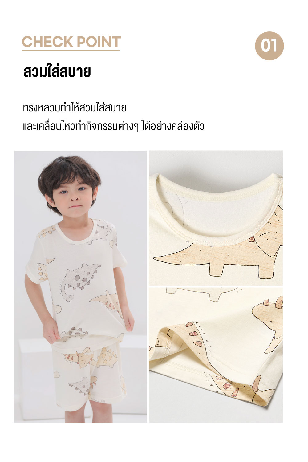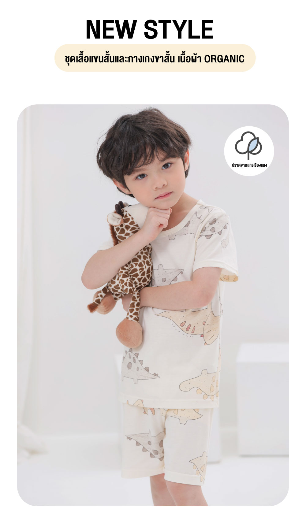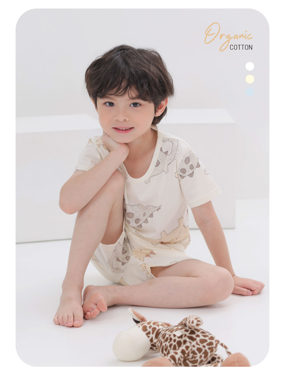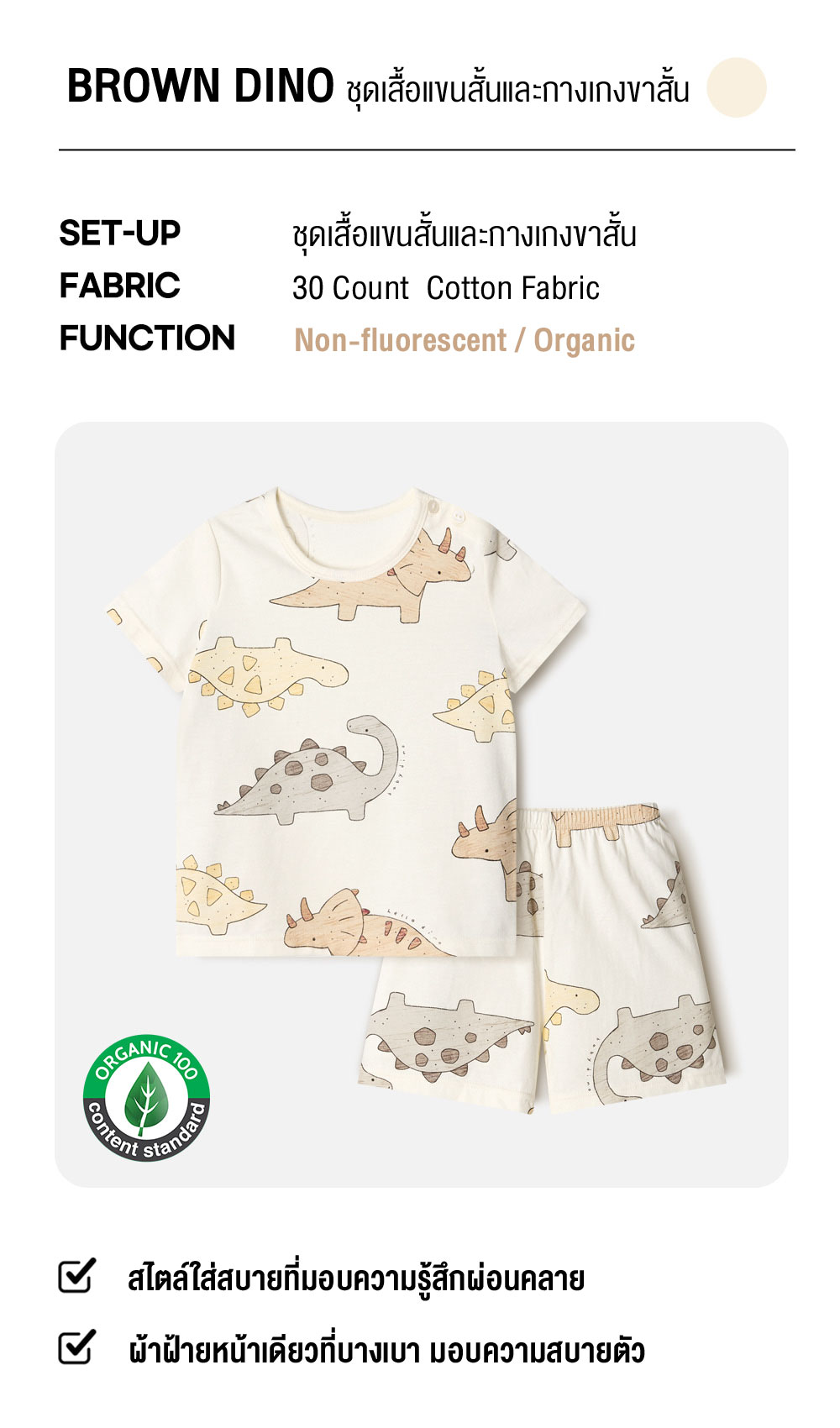 ชุดเสื้อแขนสั้นและกางเกงขาสั้น 5 ส่วน 25ss Organic Cotton Brown Dino