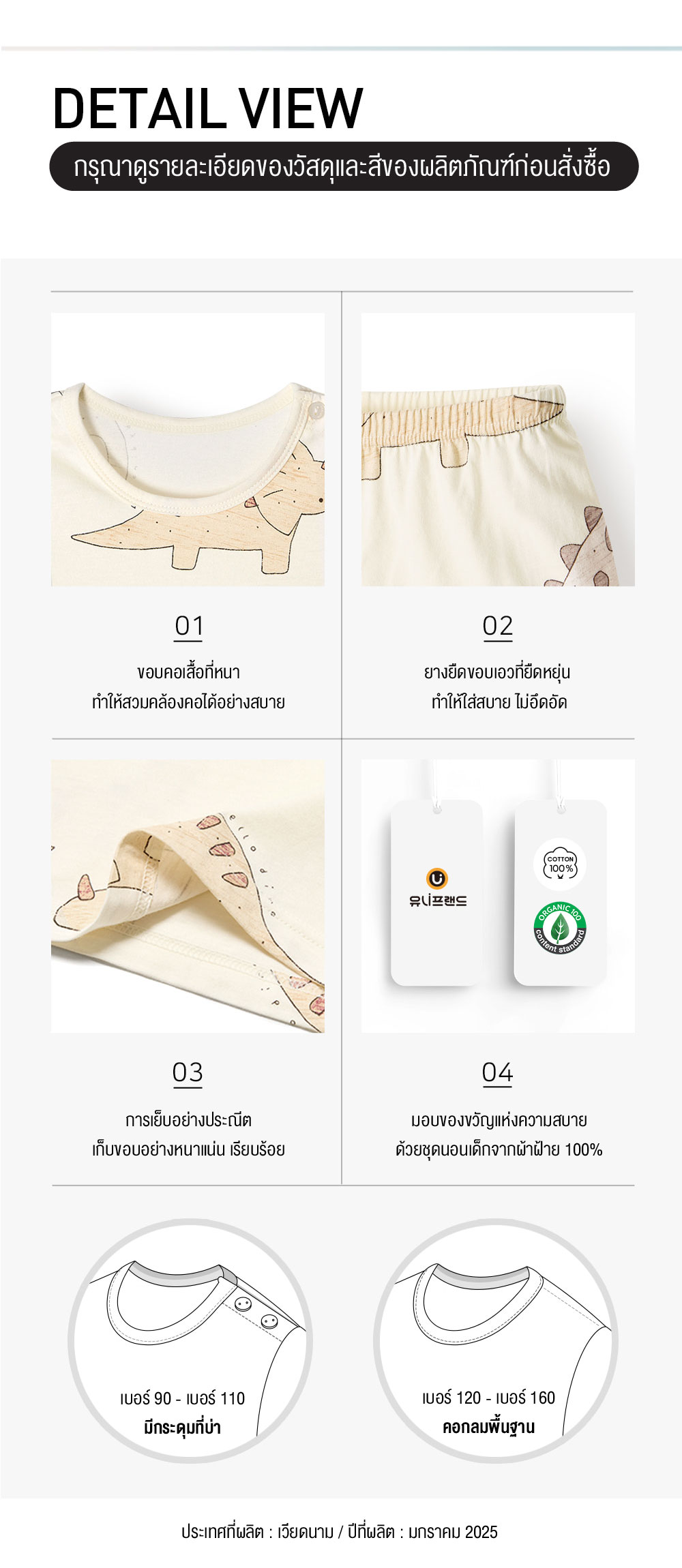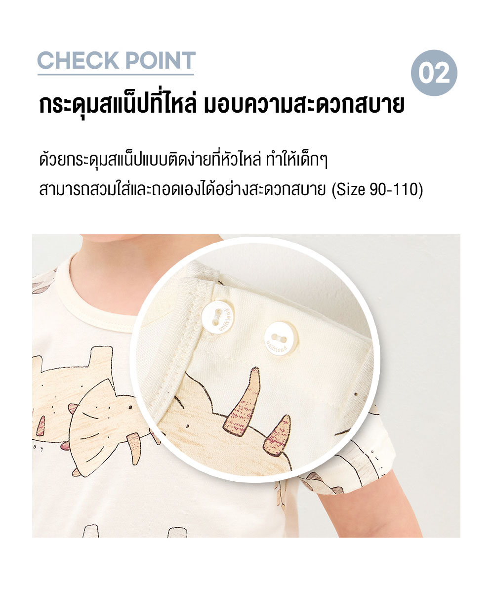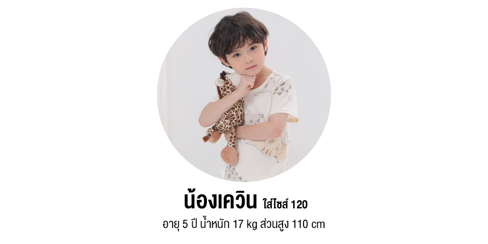 | ขนาด | 90 ( 2 ขวบ ), 100 ( 3 ขวบ ), 110 ( 4 ขวบ ), 120 ( 5 – 6 ขวบ ), 130 ( 7- 8 ขวบ ), 140 ( 9 – 10 ขวบ ), 150 (11-12 ขวบ) |