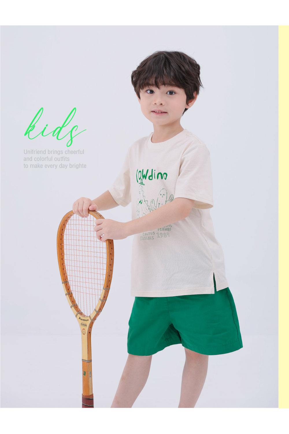 ชุดลำลองเด็กเสื้อแขนสั้นและกางเกงขาสั้น 5 ส่วนนี้ ผลิตจากผ้าฝ้ายเนื้อนุ่ม 100%