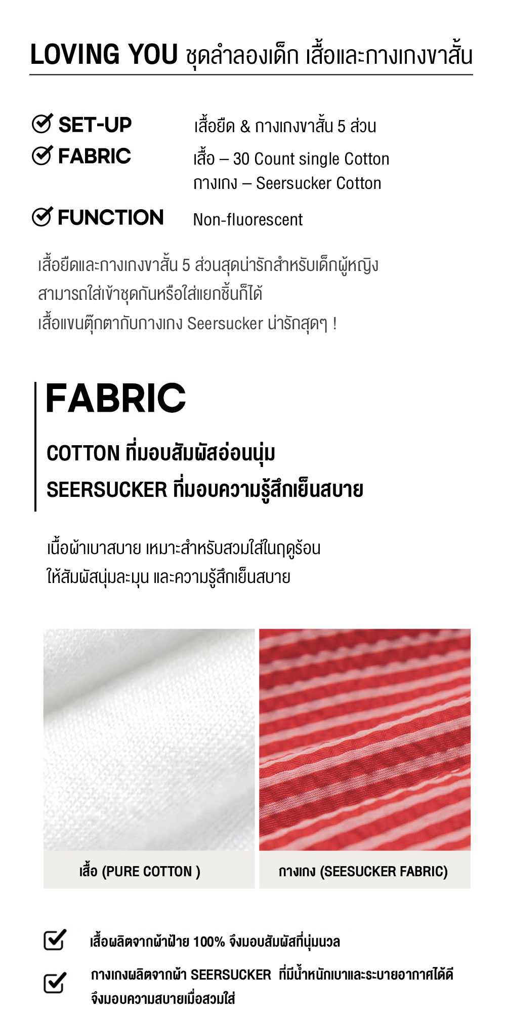 FABRIC INFO▶️ เสื้อ : SINGLE / COTTON 100% ▶️กางเกง : SEERSUCKER / COTTON 100%