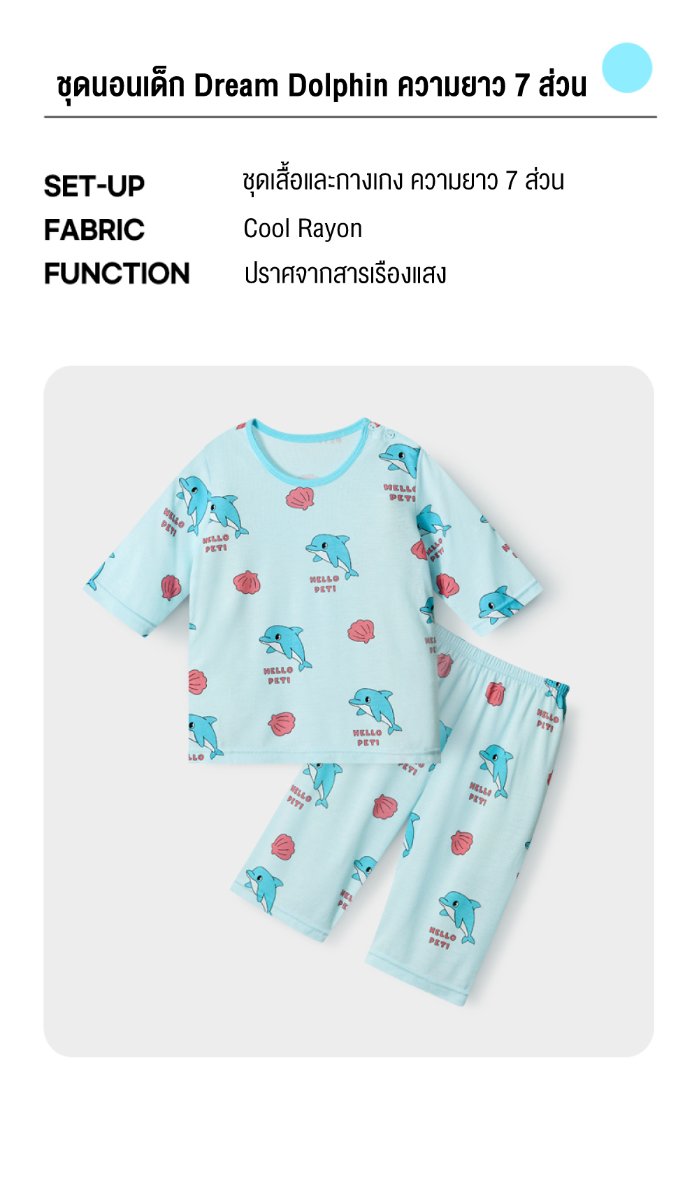 26SS/ชุดนอนเด็ก ความยาว 7 ส่วน Cool Rayon Dream Dolphin
