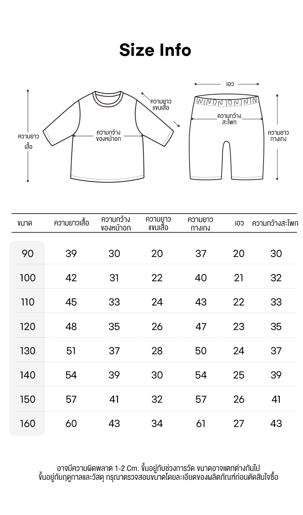 | ขนาด | 150 ( 11 – 12 ขวบ ), 160 ( 13 – 14 ขวบ ), 90 ( 2 ขวบ ), 100 ( 3 ขวบ ), 110 ( 4 ขวบ ), 120 ( 5 – 6 ขวบ ), 130 ( 7- 8 ขวบ ), 140 ( 9 – 10 ขวบ ) |