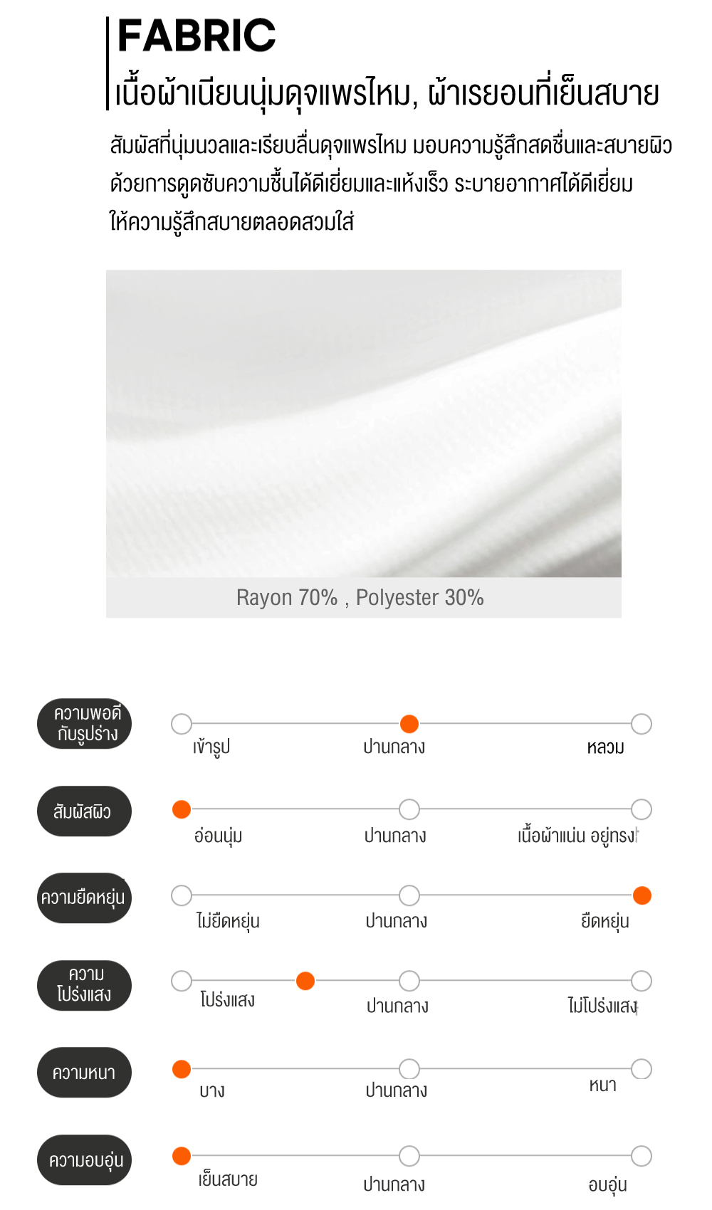 ผ้า Cool Rayon ที่ให้สัมผัสเย็นสบาย มีคุณสมบัติในการดูดซับความชื้นและแห้งเร็ว